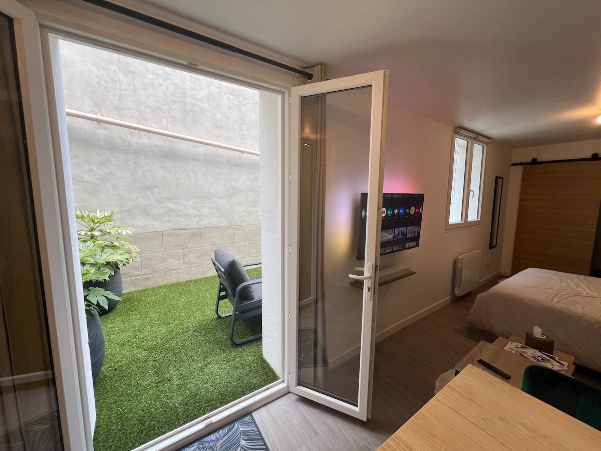 剛剛翻新的單間公寓,位於拉瓦勒-馬耶訥 (Laval-Mayenne) 主軸之間。它位於一個安靜的住宅區。 住宿設有鑰匙盒,有獨立入口,前面有私人車位。 它有一個入口、廚房:微波爐、烤箱和電磁爐、冰箱。 一間帶淋浴的浴室。最後是配有電視的主臥室/客廳。 您將會欣賞到優質的材料和裝飾。