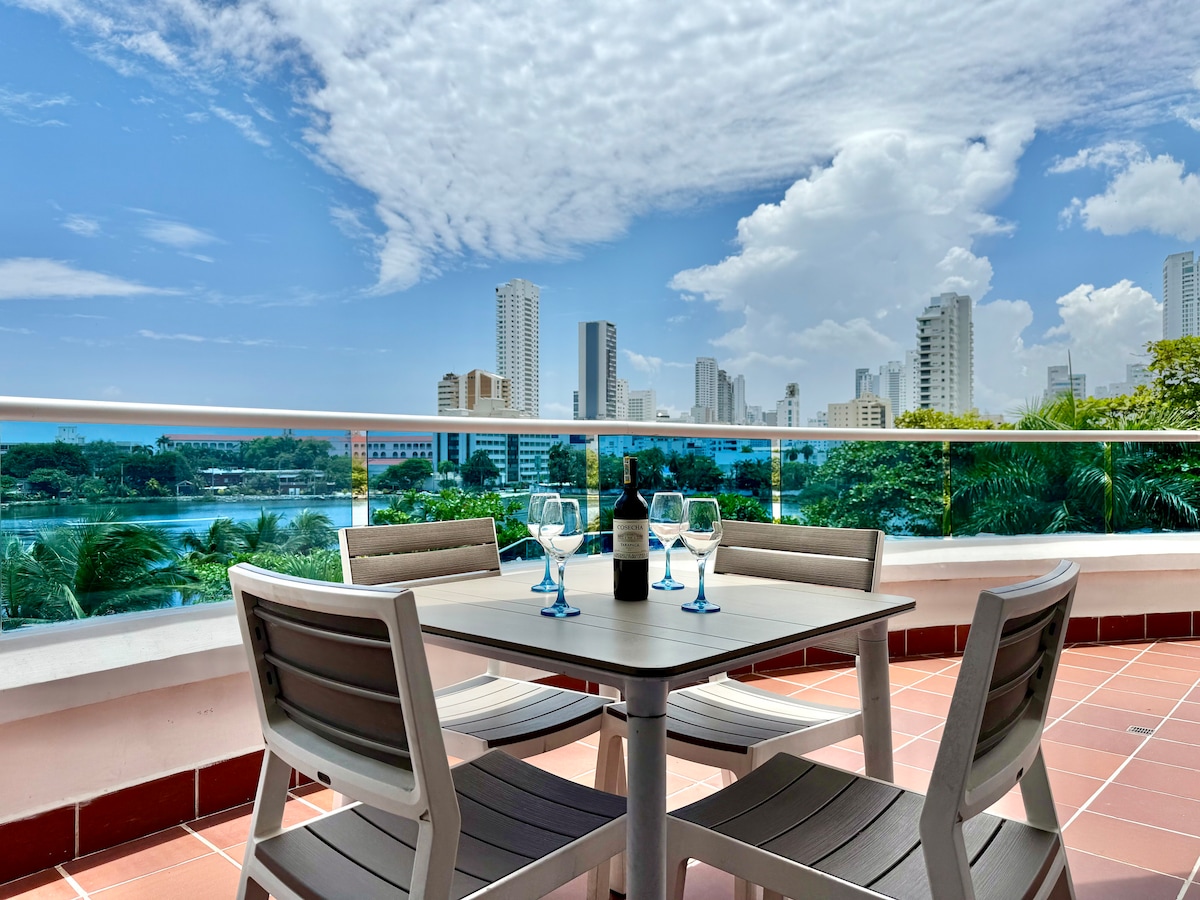全新閣樓公寓,配有大露臺,可讓您欣賞大海和卡塔赫納圍牆城市的最佳景觀。 步行5分鐘即可抵達海灘。 步行15分鐘或搭乘Uber 2分鐘即可抵達圍牆城市。 機場距離Uber 10分鐘路程。 公寓有3間臥室,每間都有獨立衛浴,社交區域還有一個全功能衛浴。 大樓頂樓有2個小吃,還有一個桑拿房。免費停車。