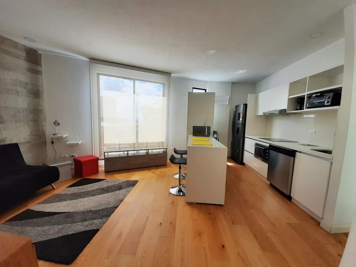 波哥大景觀迷人的明亮舒適 Loft 空間 入住波哥大歷史中心的陽光充足 Loft 空間。這間時尚的單臥室公寓配有舒適的雙人床和舒適的沙發,非常適合第三位房客入住。亮點是有烤肉架的寬敞共用露台,您可以在那裡放鬆身心,欣賞這座城市的壯麗景色。非常適合想要體驗波哥大魅力、享受舒適與時尚的人士。
