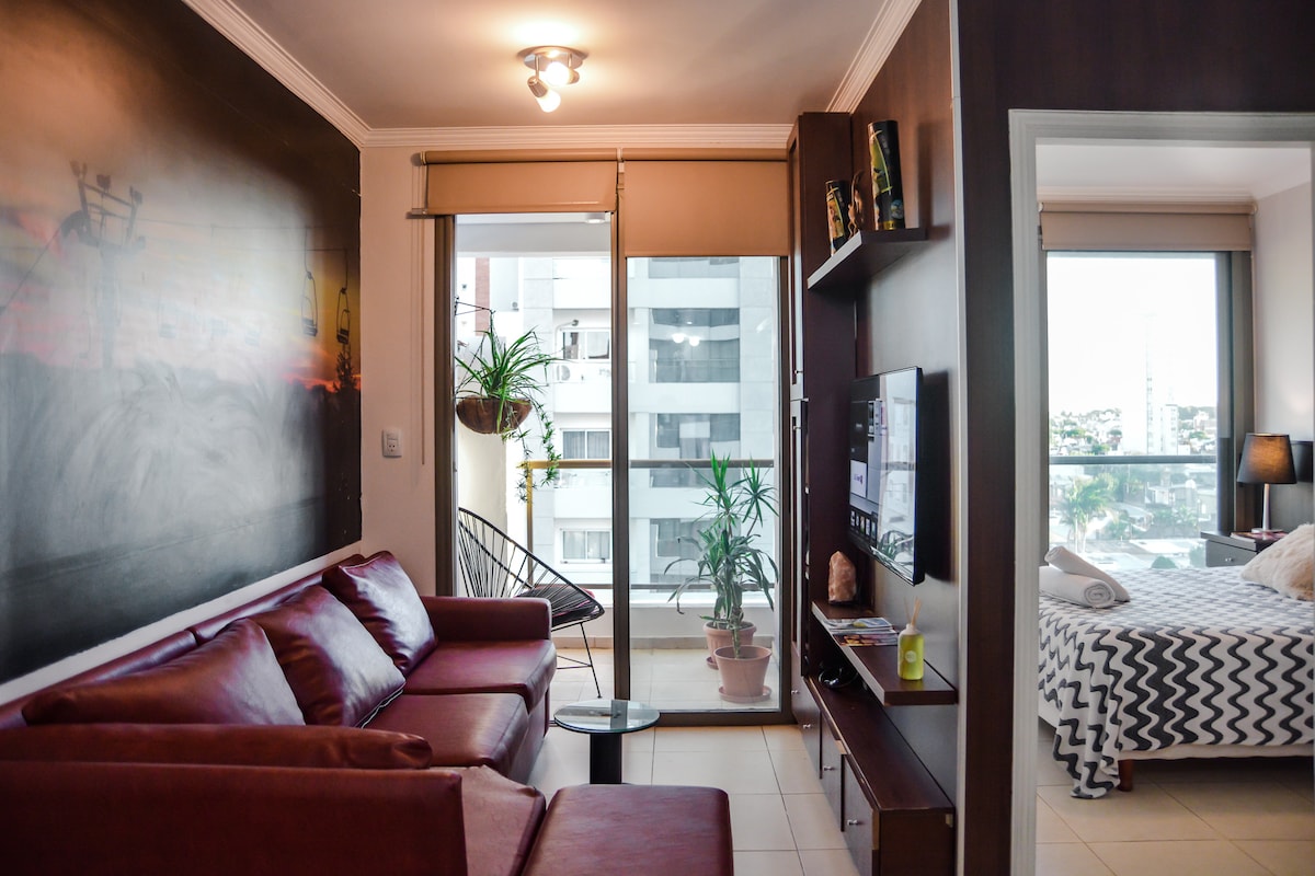 享受這間安靜且位於巴拉那市中心的住宿,俯瞰河景。 它有一間臥室,配有雙人牀、平臺和冷/暖空調。 客廳配有整合式廚房,設備齊全。 配備Chromecast的32吋電視,可使用串流平臺。 睡眠扶手椅(適合1名成人或兩名未成年人) 全套衛浴 寢具和白色牀單。 乾燥的早餐。 可供4位房客使用的餐具和餐具。 車房需額外收費(需提前預訂)