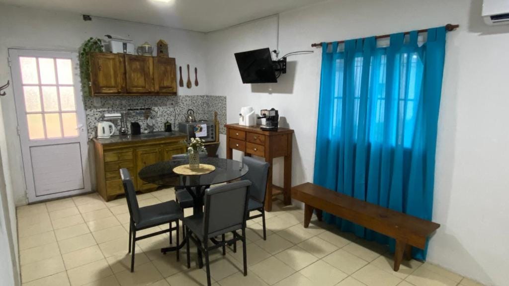Located in Santo Tomé. A few meters from the banking, commercial and bars area. 10 minutes from Santa Fe, Sauce Viejo Airport and Colon and Union soccer stadiums. Furnished and equipped for 7 people. Quincho, grill, bar, freezer and pool are to be enjoyed. For any time of the year, whether to work, attend sporting events or congresses, rest, tour the region, renovate your home, receive or accommodate family members.
