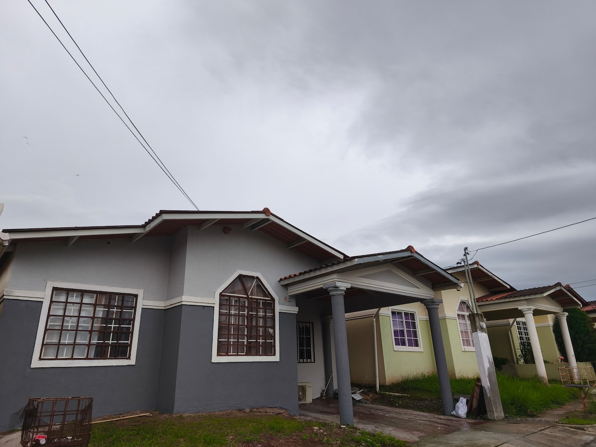 帶著全家人來這個好地方。 位於Quintas Del Pacifico、Costa Verde、Chorrera、附近的醫院、商場、超市、學校的房源。 3間臥室,配有aa。1間浴室、廚房、餐廳和客廳。距離Westland商場20分鐘,距離健身房、醫院和超市10分鐘。 2個安全的停車場,靠近門廊。 靠近後院。為自己和家人享用整套房子。 1張雙人牀、1張全尺寸牀和2張雙人牀。 所有房間均配有步行衣櫃。
