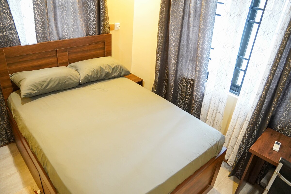 歡迎來到你位於Cantonments的私人1間臥室客用住房,這是阿克拉最安全和最理想的社區之一。 這個現代度假勝地提供一間明亮的臥室,配有大床、舒適的起居區、智能電視、時尚的浴室、熱水和設備齊全的小廚房。 配備冷氣、可靠的高速WiFi和24小時保安服務,讓你舒適安心。 距離大使館、餐廳、商場和科托卡機場(Kotoka Airport)僅幾分鐘路程。