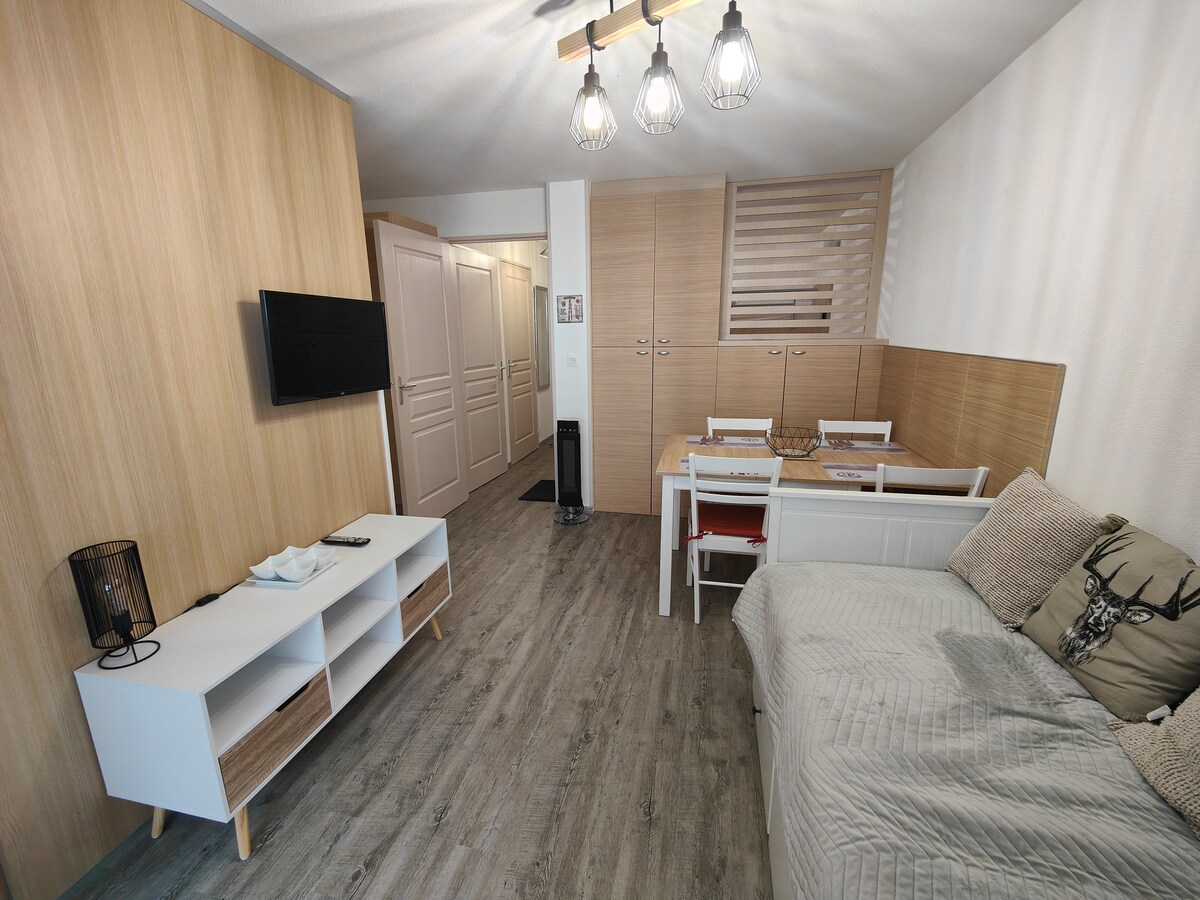 租賃2間客房夾層5張牀,每週、週末、5月或11月的橋樑、學校假期夏季/冬季和淡季。 整個住宿都可以步行前往,因為一切都在附近,季節提供免費巴士接駁巴士。 免費停車。提供許多雪鞋、徒步或山地自行車。 公寓位於遊戲圖書館旁邊,您可以與家人或朋友一起享受許多遊戲的樂趣。