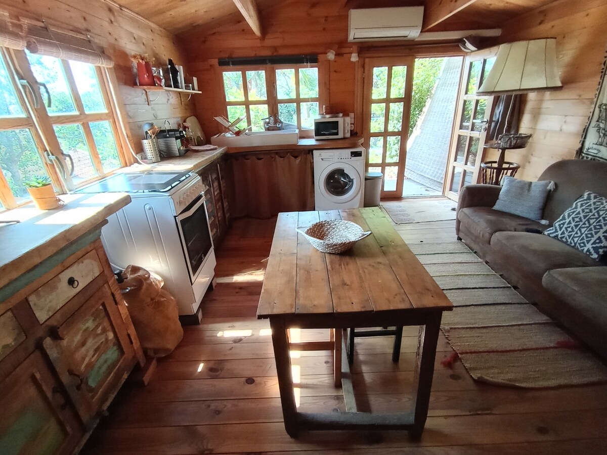 l'Albéa:16 平方公尺的舒適小木屋,配有 70 平方公尺的露台和私人入口。 小木屋由法國道格拉斯木材建造,使用環保木棉絕緣材料,隔熱效果極佳,並配備空調。 小木屋附設15平方公尺的漂亮浴室和廁所。 位於耶爾 (Hyères)、卡奎蘭 (Carqueiranne)、普拉代 (Pradet) 附近,距離海邊 15 分鐘。 附近有自行車道和商店。 歡迎攜帶寵物入住。
