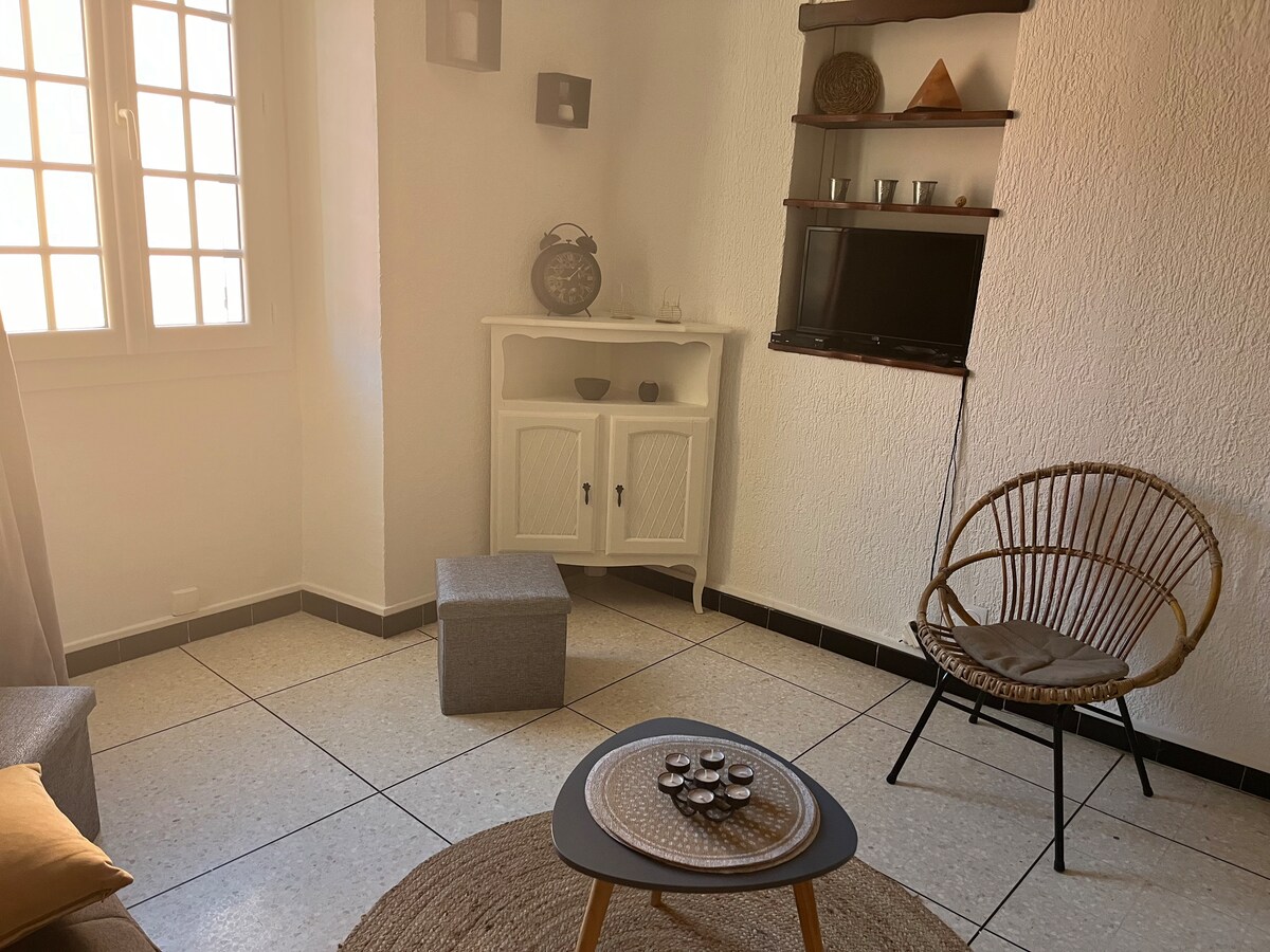 Appartement traversant entièrement rénové situé au premier étage d’une vieille maison de village. D’une superficie de 32 m2 idéal pour un couple aimant l’histoire et les monuments, la nature et les randonnées... À vingt mètres de la rue piétonne et de ses commerces ,restaurants, cafés,supérette….. Piscine communale à l’entrée du village . Grimaud ,Cogolin se trouvent à 15 mn, les plages sont à 25mn . Profiter de la campagne tout en étant proche du golfe de Saint-Tropez.