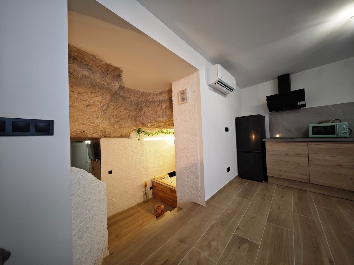 在這間洞穴屋中,你將體驗在岩石下生活的感受,更可在雙人按摩浴缸中,透過其中的菊石觀察時間流逝。 配備廚房、洗衣機、客廳兼餐廳、冷氣,客廳和睡房均設有電視。 非常適合浪漫度假,並專為提供獨特體驗而設計。 毗鄰阿爾卡拉德爾胡卡爾城堡,距離城堡停車場僅兩分鐘路程。 享受入住洞穴屋的體驗,同時享受現代化的各種舒適設施。