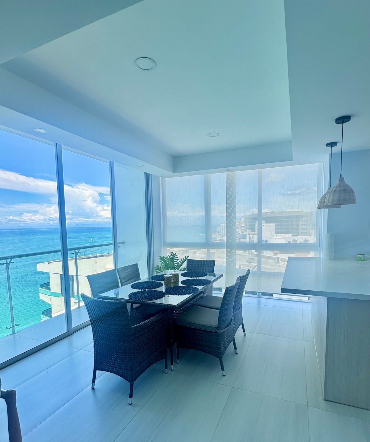 與全家一起享受和放鬆。 公寓提供海景,前門可直接通往海邊。 位於三樓,最多可容納8位成人,設有3間臥室,每間臥室均設有冷氣和全套浴室。 社交區域包括電視、客用浴室、客廳、用餐區和設備齊全的廚房。 位於市中心,距離Salinas僅15分鐘,距離Punta Blanca僅15分鐘,距離Ballenita僅7分鐘。 附近有超級市場