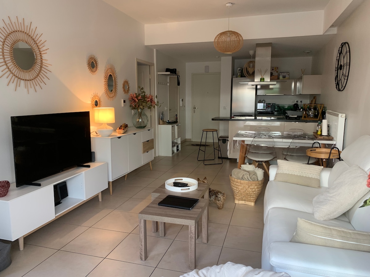 Superbe T2 spacieux, confortable, fonctionnel, climatisation. Wifi. Lumineux, sans vis à vis, tres calme. Idéalement situé entre la ville et le lac. Cuisine équipée avec lave vaisselle, réfrigérateur, congélateur, fours avec tout le nécessaire de cuisine. Salon agréable avec TV. Canapé. Une chambre avec dressing +TV literie en 160 hyper confort. SdB avec douche à l’italienne, lave linge. Situé au1er étage,calme, balcon.Votre place de Parking sécurisé.