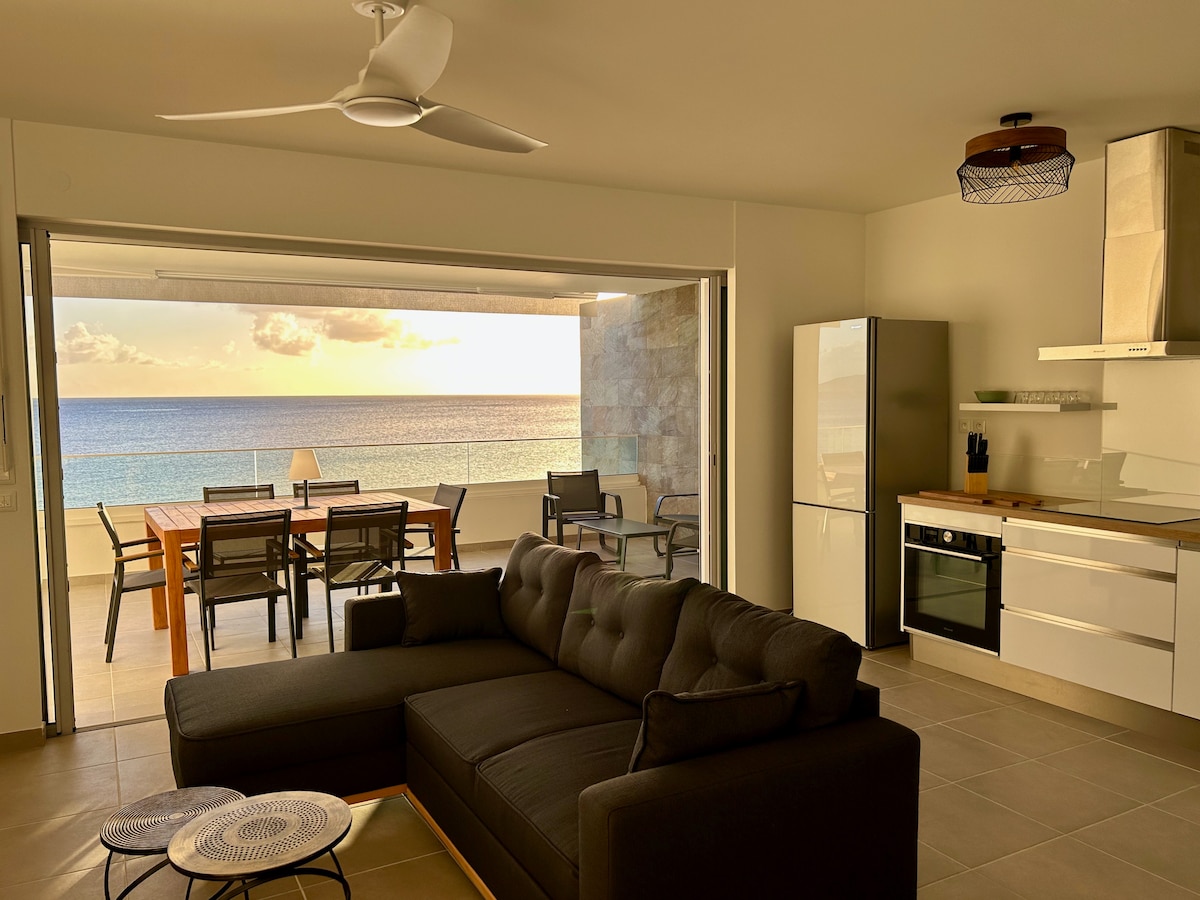 迷人的現代獨立空調公寓( 322平方英尺) ,房東的別墅一樓,濱水木露臺( 160平方英尺)。 這個獨特的地方可俯瞰Grande anse d 'Arlet的錨地,可直接免費進入我們的私人碼頭和大海。 沿著我們的私人小巷步行3分鐘即可抵達安靜的Grande海灘。