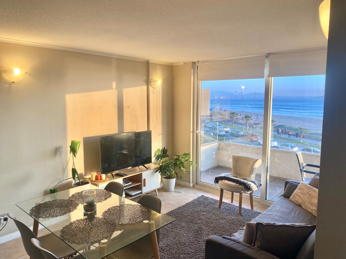 複式公寓(兩層)位於Av. del Mar ,距離海灘僅幾步之遙(步行10分鐘) El Faro de La Serena區域,環境非常安靜。 公寓擁有極佳的海景,有2個大露台、2間臥室和2間浴室、停車位、泳池、燒烤、24小時全天候控制出入和遊樂場;設備齊全,可供4人入住。 WiFi、3台智能電視。 靠近Puertas del Mar購物中心,有超市和服務。