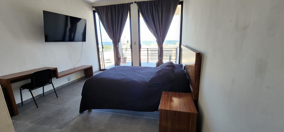 Fiber Internet- Expansive panoramic views of the Sea of Cortez from this quaint studio on top of a separate 2 bedroom home. Everything you need is here - beach access, laundry, kitchenette, AC, and private bathroom with updated shower and toilet (aug 2025). Breathtaking views and peaceful surroundings. Close to restaurants and stores, outdoor kitchenette allows you to cook with a million dollar view. 3-5 minute walk to beach and kite launch. Search "iQiPwZujl9w" in Youtube for video.