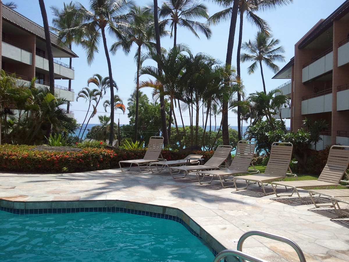 1 間臥室公寓,距離 Kona 的首屈一指的衝浪勝地僅幾步之遙
