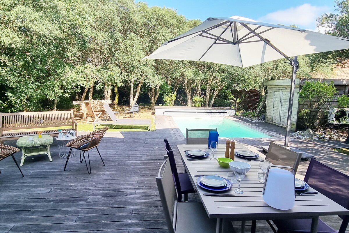 探索我們全面翻新的巴斯克-蘭代斯別墅,位於Hossegor,位於寧靜的死巷盡頭,不會被忽視。 在主導地位,享受140平方米的南向露台,可欣賞森林景觀,非常適合您的用餐和放鬆時刻。 步行15分鐘即可抵達湖畔和市中心,您位於社區的中心,直接連接通往海洋、湖泊、商店和衝浪區的自行車道