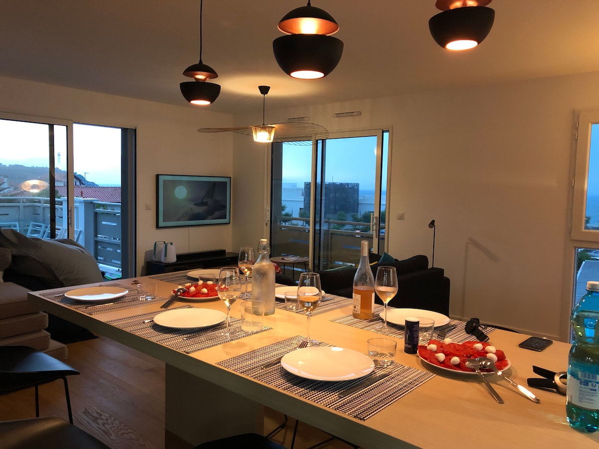 歡迎來到這間獨特的公寓,位於五樓,有電梯,俯瞰世界著名的衝浪目的地Hossegor的中央海灘。 可直接前往海灘,附近有很多餐廳,步行即可抵達商店,距離市中心也很近,一切都為您提供無憂無慮的住宿體驗。 所有照片都是從公寓拍攝的。享受獨特的度假,欣賞壯麗的海景。