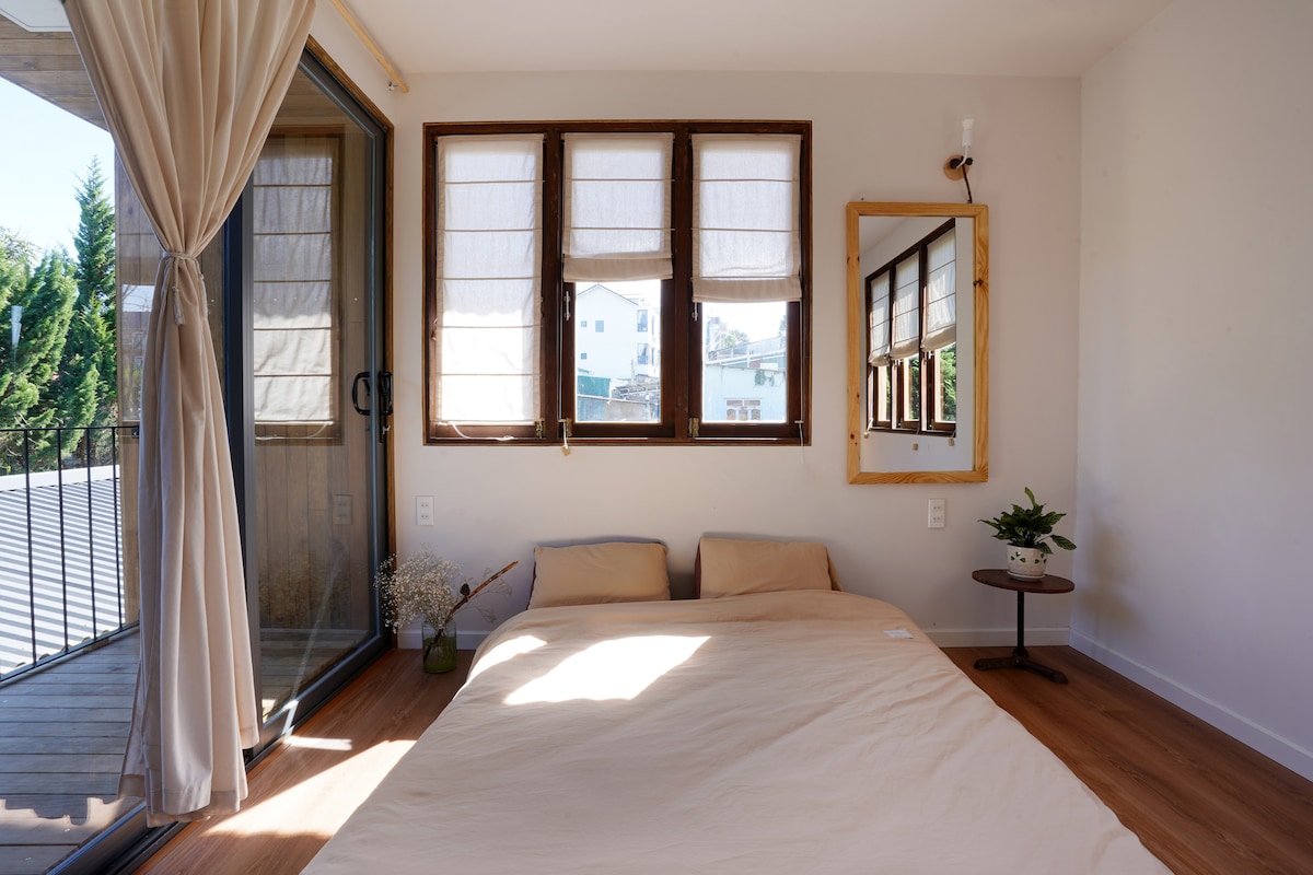 家居設計有木質家具,營造溫馨的空間,隔音門讓您感覺自己進入最安靜和親密的地方。 大叻大學附近的旅居,距離夜市1.5公里,超級方便 迷你花園,讓您在陽台上舒適地喝杯茶,欣賞大叻的茂密綠色