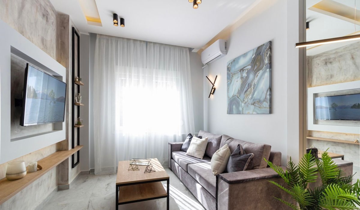 新翻修。時尚的1居室公寓,坐落在歷史中心,四周有波西米亞咖啡館、藝術畫廊和餐廳。步行5分鐘即可抵達白塔,位於Demetriou Gounari街的美麗人行道上,位於Tsimiski街和Egnatia街兩條主要道路之間。非常適合情侶/夫妻、單身人士和商務差旅人士。
