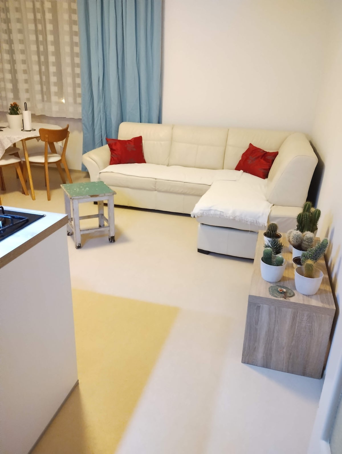 豪華立體主義別墅公寓,位於一個安靜的綠色住宅區。全新裝潢的公寓,有獨立入口,面積為75平方公尺。房子前面有安全的停車位。美麗的大花園。廚房(設備齊全)、可供2人入住的臥室(提供嬰兒床)、客廳(我們可以為第三人安排床墊,最好是兒童或青少年)、帶浴缸和淋浴間的浴室(包括浴袍)。洗衣機和烘乾機。歡迎攜帶狗入住,費用為每天10歐元。