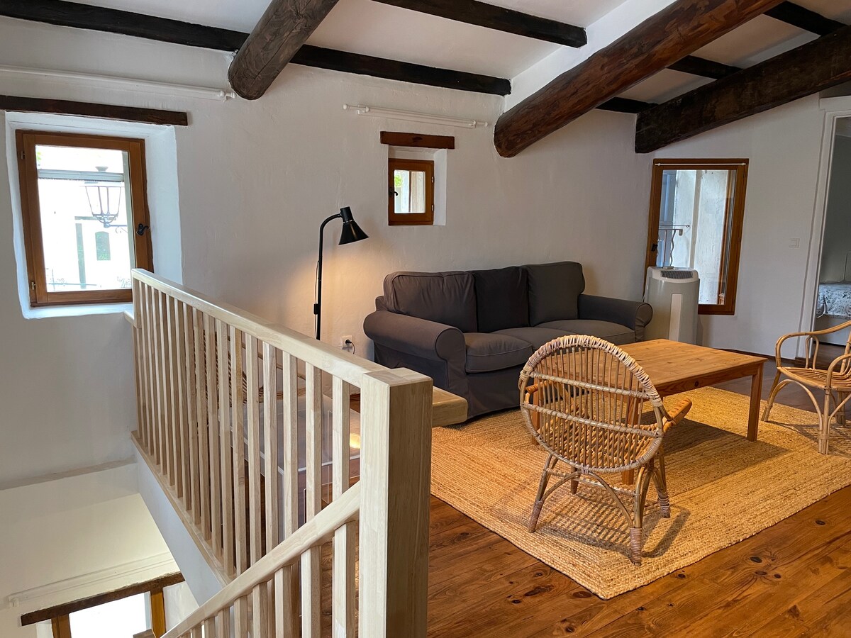 這座 130 平方公尺的附屬建築坐落在一個歷史可追溯到 18 世紀的封閉式庭院中,有 3 間臥室、1 間客廳、2 間廁所、1 間浴室、30 平方公尺的客廳、27 平方公尺的超級設備齊全的廚房、洗衣房和陰涼的露臺。 這座房子將讓您與家人或朋友一起享受寧靜。 距離梦幻的梭村 (Sault) 6 公里。 歡迎攜帶寵物入住。 這間寧靜的住所為全家提供了放鬆的住宿體驗。