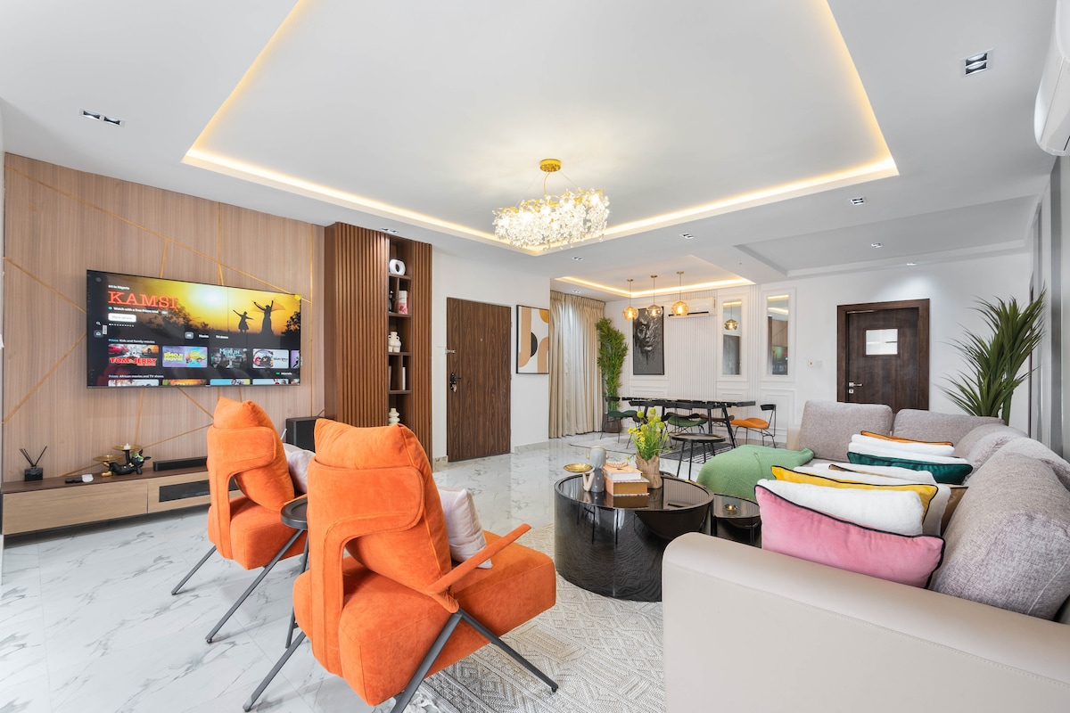 這間豪華公寓坐落在拉各斯最安全和最獨特的地區之一,是一個寧靜的度假勝地,距離頂級餐廳、大使館和娛樂設施僅幾分鐘路程,非常適合行政人員、情侶和挑剔的旅客。 設備🍽️齊全的現代廚房,配有時尚的裝飾 適合工作或玩耍🌐的高速Wi-Fi ⚡ 24小時全天候電力、安全和水 🚘 免費安全泊車