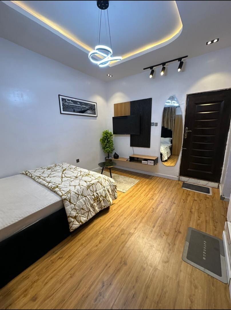 全新服務公寓,配有全套房間套房。 它以您的方式為您設計,為您的物超所值、客廳和1間臥室公寓,所有房間套房均配有廚房。 配備空調、監控攝影機、熱水器 洗衣機是專屬的服務費。位於非常寧靜和安全的街區 (a)排水 (b)路燈 (c)安全 (d)道路網路和靠近 -拉各斯大學 -電子中心 -好麵包店、快餐店 -第三大陸大橋