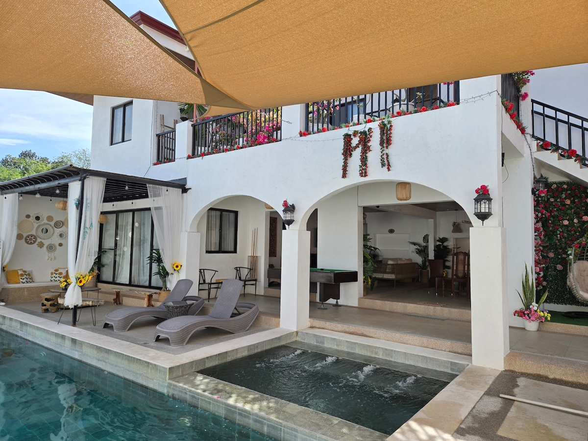這間位於Pansol的7房私人別墅空間寬敞,是舒適與歡樂的完美結合。 它有幾間附設浴室的睡房、一個大型飯廳和一個舒緩的溫泉泳池,專為大家庭、朋友和親密活動而建。 俯瞰山坡 在Makiling ,你會在美麗的日出中醒來,並在天然溫泉的療癒水域中沐浴! 這別墅是我們家族珍貴的休息之家,希望你能像我們一樣感到賓至如歸。