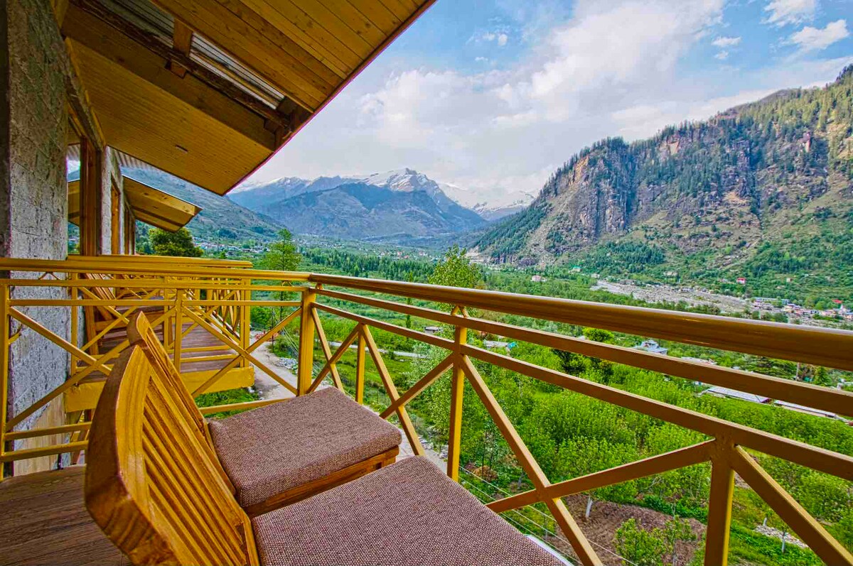 我們是位於馬納利山谷中心的精品店。我們有私人陽臺的房間,面向山脈和公共空間放鬆或工作。我們提供高速WiFi和門禁停車位。我們的房源距離商場路僅1.5公裏,距離私人巴士站僅3公裏。作為房東,我們會協助您安排計程車、當地景點、租用自行車等。 我們還有一家室內咖啡店和咖啡館。 請注意, 早餐不包含在內 加熱器需額外收費