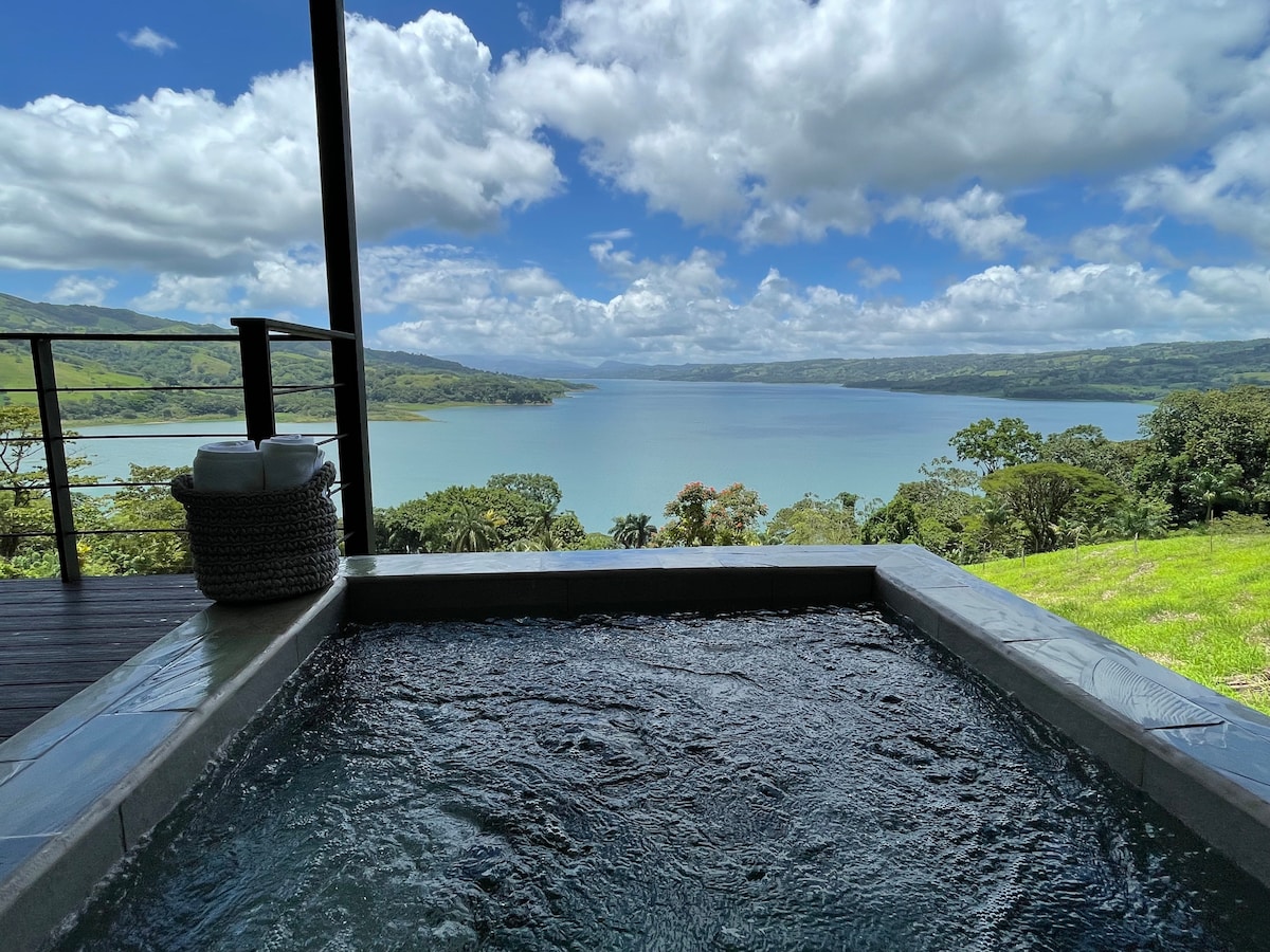 在這個新建的閣樓中,在美麗的阿雷納爾湖旁邊,大自然與現代相遇。 徒步前往附近的叢林小徑,參觀La FortunaTown的水療中心和溫泉、周圍的瀑布,或在令人嘆為觀止的景色中放鬆身心。 在夏季,步行150英尺( 50公尺)即可抵達阿雷納爾湖( Lake Arenal )。 這裡是皮劃艇、釣魚、劃船、風帆衝浪和觀賞野生動物的完美場所。 在戶外玩了一天後,您可以參觀我們當地的啤酒廠,並在附近城鎮的餐廳用餐。