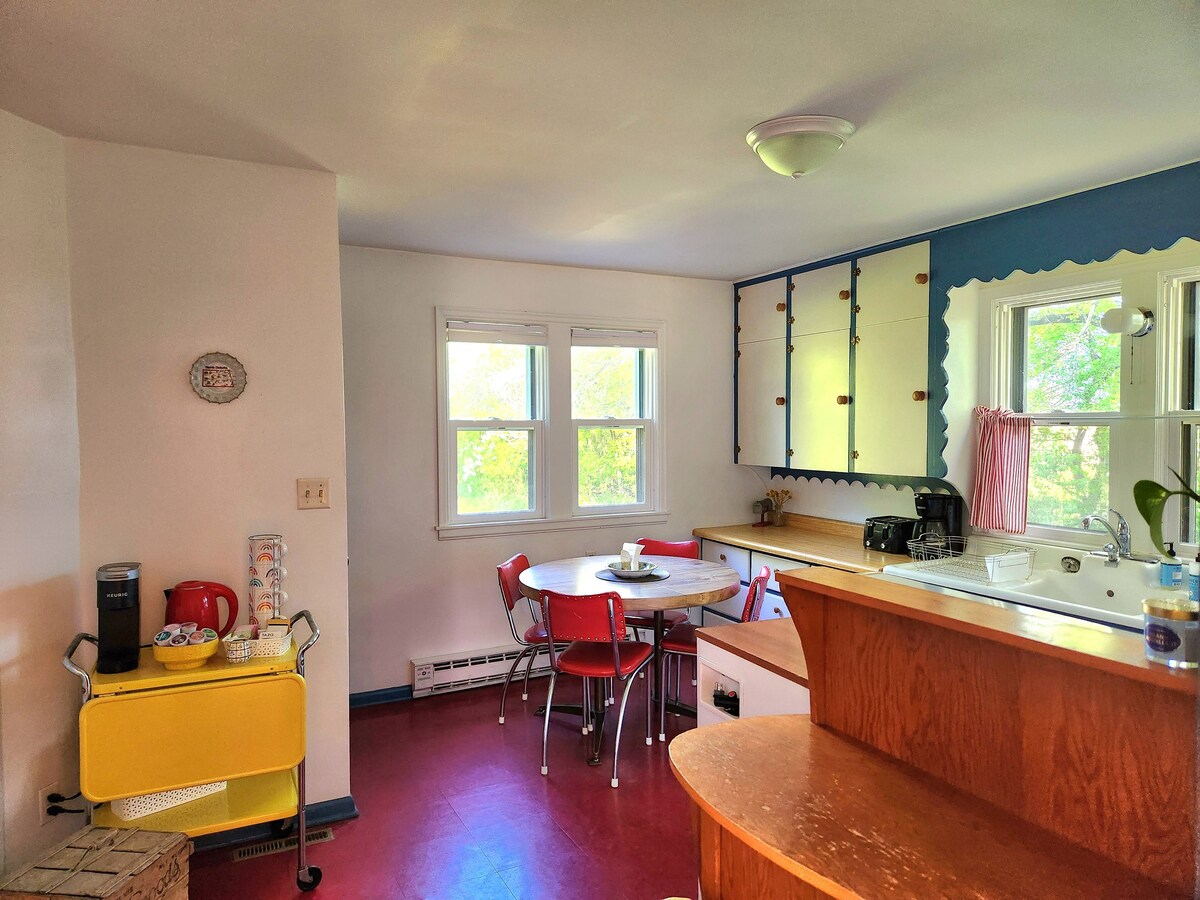 歡迎來到我們獨一無二的客房。 這是一間古老的鄉村校舍,美國軍團音樂廳( American Legion Hall )變成了一個現代化的度假勝地。 這個獨特的空間融合了歷史魅力與全功能廚房、舒適的牀鋪和戶外設施等更新的舒適設施。 擁有高高的天花板和原創細節,非常適合情侶、家庭或小團體。 無論您是放鬆身心還是探索這個地區,這間迷人時尚的住宿都能為您提供難忘的體驗,擁有豐富的歷史。