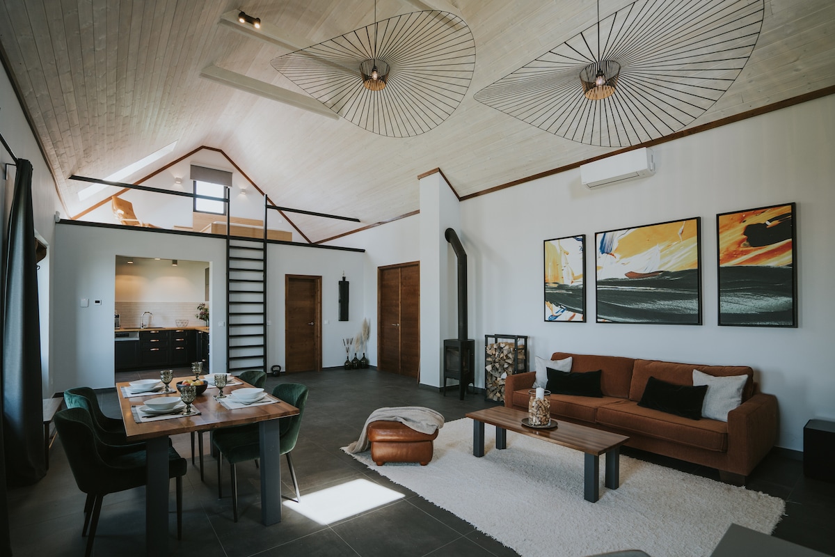 在托爾瑙山丘的懷抱中,在這個安靜、時尚的地方放鬆身心。適合您隱退、放鬆、思考! Pacsirta Kicsiház周圍的花園被溫暖的陽光所包圍。每天從陽臺和露臺上欣賞日出和日落。 您可以在設備齊全的廚房烘焙、烹飪,也可以選擇在花園裡烹飪。 房子附帶自行車,您可以在周圍的托爾瑙山丘上騎行。奧佐拉節即將到來!
