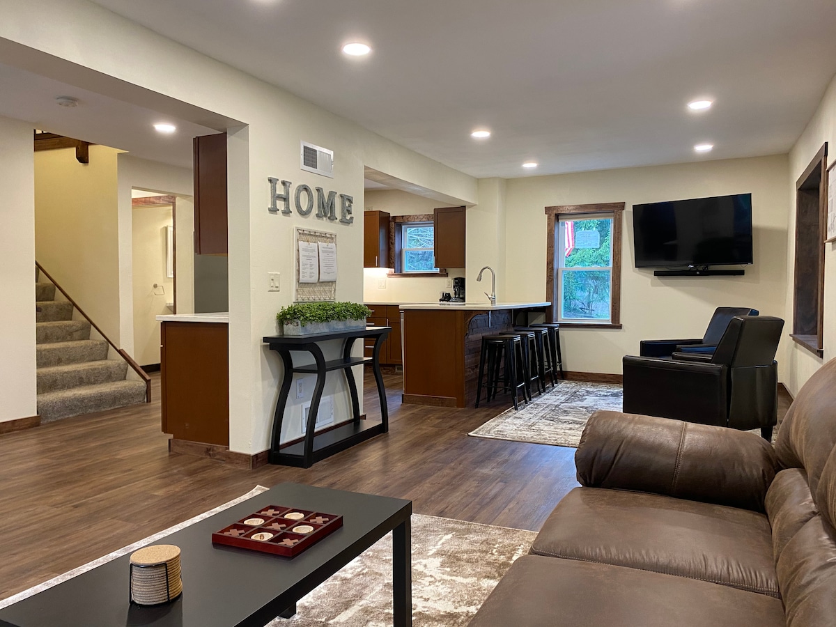 非常適合家庭和團體入住! 這間寬敞的公寓可容納 8 人,主臥室配備特大床和獨立浴室,第二間睡房則配備兩張大床。 享受全新的 LVP 地板、Roku 智能電視、設備齊全的廚房以及令人放鬆的套房按摩浴缸。 在霓虹綠色的牆壁前拍攝有趣的相片,然後前往幾分鐘路程外的威斯康辛德爾斯景點探索。 🌊 不包括水上樂園門票。