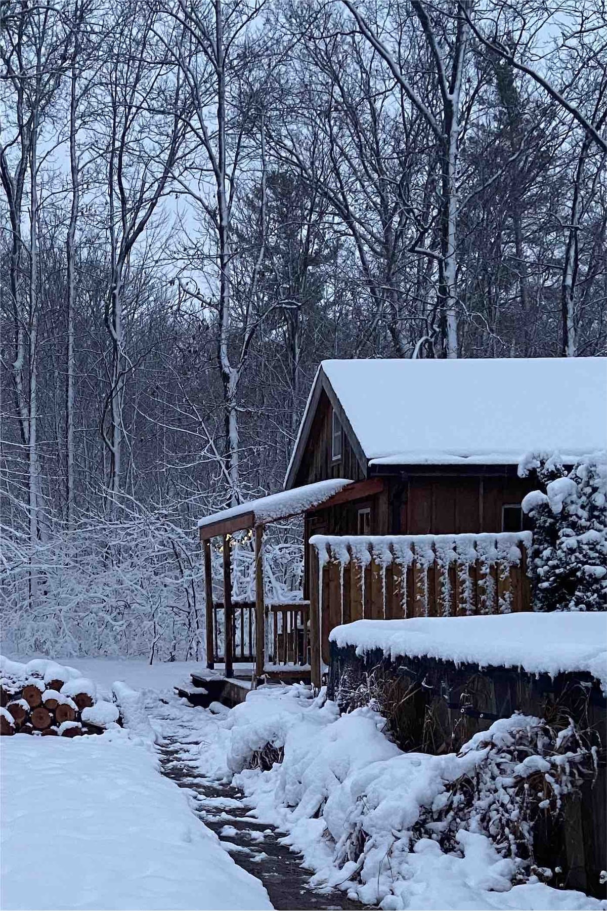 這間迷人的私人小屋位於樹林中,配有WiFi、丙烷暖氣、冰箱、炊具、微波爐、大烤箱、燒烤、基本烹飪用品、空調,小屋內沒有水,但外面有水龍頭、冷水器、2張日式床墊,可睡4人,位於美麗的池塘旁。 非常適合浪漫度假或一群好友的自然度假。小屋內沒有洗手間。洗手間設施位於穀倉的馬廄內,是唯一的共用空間。 這是一個可愛的營地,全年都很愉快。