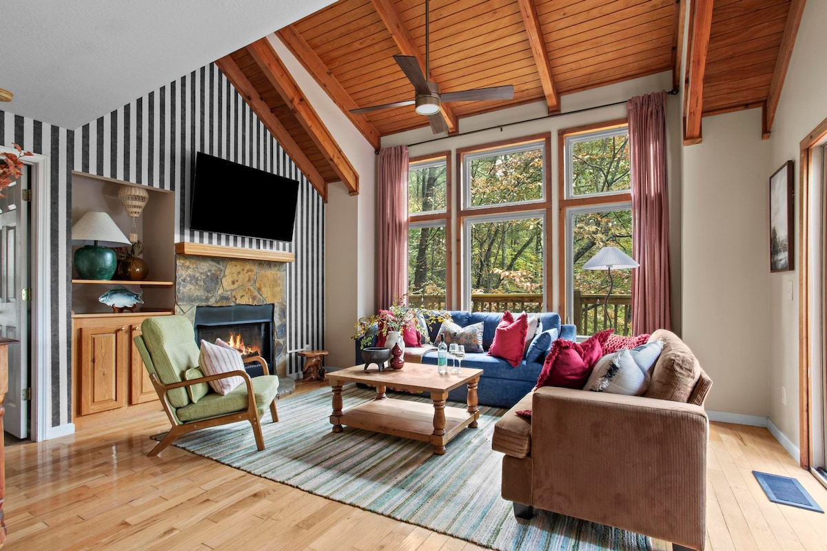 這間藍嶺小木屋坐落在托科阿河(Toccoa River)之上,兼具山景和下方湍急河水聲的罕見組合。 可容納 10 人,設有 2 間睡房和一個閣樓,並配備按摩浴池、室外電影銀幕、電子遊戲機和營火炉。 在設有暖氣和屏風的門廊上放鬆身心,或享受多個露天平台、設備齊全的廚房以及寧靜的環境,距離遠足、釣魚地點和藍嶺市中心僅幾分鐘路程。 交通方便,無需四輪驅動車。
