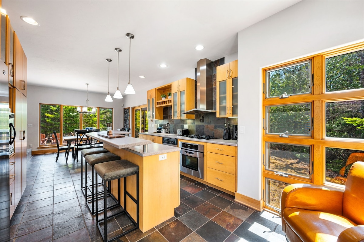 Clarity House隱藏在Glen Arbor的中心,是一間現代化的小木屋,有3間臥室和3間全功能浴室;戲劇性的開放式廚房/大房間;拋光混凝土地板(配有地暖);大型島嶼是中央聚集地點,焦點是超大的南/東/西窗,以獲得最大的日光; 24英尺天花板;時尚的設計和家具。 和平的室外露臺,設有火坑和熱水浴缸,儘管位於市中心,但感覺「在樹林中」!