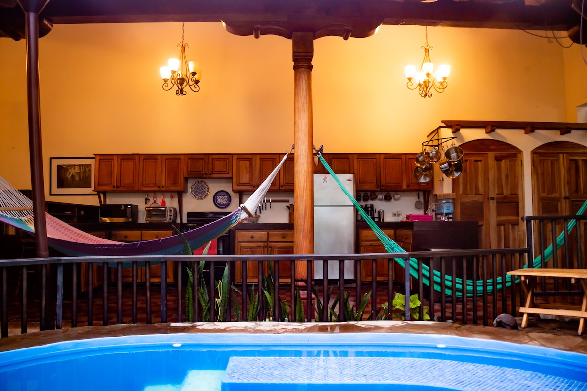 Welcome to "La Gran Sultana", a colonial house rebuilt in 2002 with a patio garden and a pool. It can host up to 12 people in 4 rooms. The house is located 2 blocks from Main Square. In 2023, we have made important improvement in the decoration of the patio: we have added a ceramic on the long corridor, we have installed 2 big sailing models and paintings of outstanding places in Nicaragua together with a well known adventurer. See the pictures!
