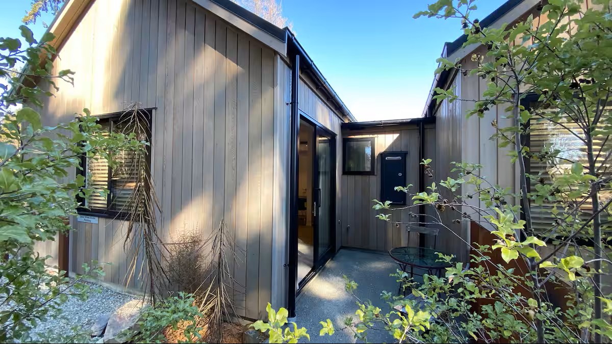 This brand new modern two bedroom cottage is perfect for relaxing. It has high quality fittings, fixtures and appliances, you will also be very comfortable year round with the heat pump. Entrance can be through the internal garage, great for winter months, or via the covered veranda, which happens to be perfect for morning coffee in the sun. The cottage boasts a beautiful bathroom with underfloor heating and two bedrooms. It is located in a quiet area, walking distance to town.