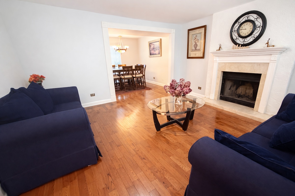 新裝修的牧場住宅,非常適合長期住宿。 配有全新的廚房電器、家具、洗衣房、專用工作空間、舒適的泡沫牀和58英寸電視。 距離Round Lake約1個街區。 靠近羅林斯路( Rollins Road )的購物中心,距離福克斯湖( Fox Lake )約15分鐘,距離六旗( Six Flags )約20分鐘,距離海軍基地30分鐘。
