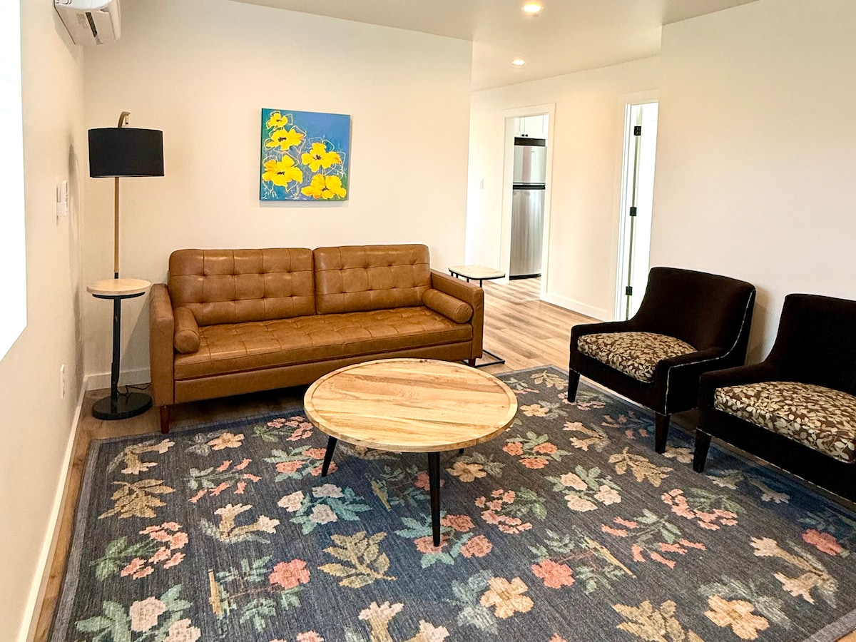入住我們寧靜的住所,配有豪華的加大雙人牀和貼心的設備與服務,提供長期舒適的住所,包括吸塵器。 使用50英寸Roku電視放鬆身心,如有需要,可免費播放廣闊的電影/電視節目圖書館。 小廚房配有電爐和空氣炸鍋/烤箱組合,非常適合自製餐點。 我們的全包套房提供24小時支援,確保住宿順暢。 體驗我們私人公寓的魅力,以您最大的放鬆為考量。