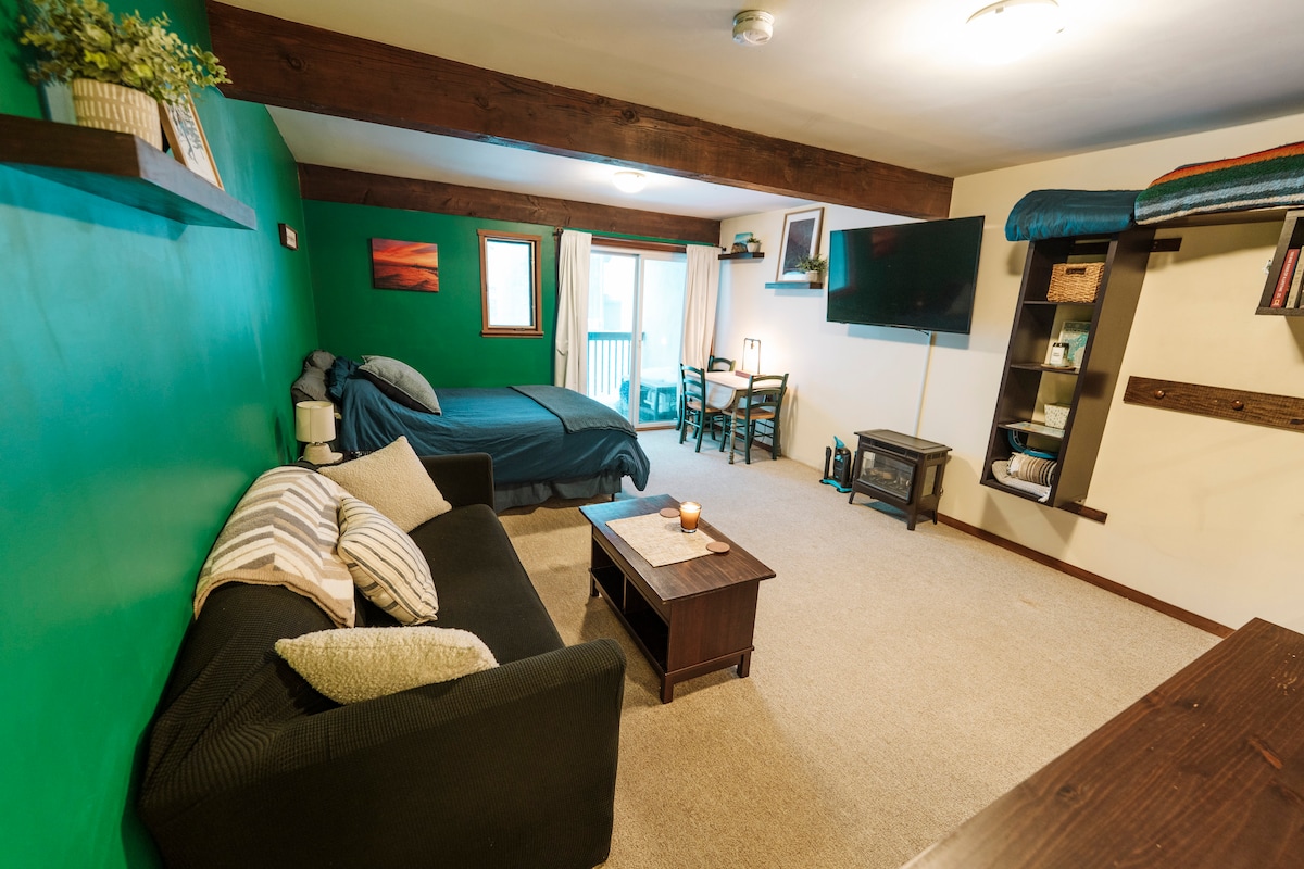 新翻修的1間臥室公寓,位於Stowe Mountain Resort附近的Original Lodge大樓的Toll House基地區域。冬季可直達滑雪場(視天氣而定,可乘坐5分鐘的平坦滑雪板前往收費站電梯)。夏季有游泳池、網球場和健行步道。 這間舒適的單臥室公寓配有設備齊全的廚房、帶天然氣壁爐的客廳、洗衣機和烘乾機,以及單位外的私人滑雪儲物空間。