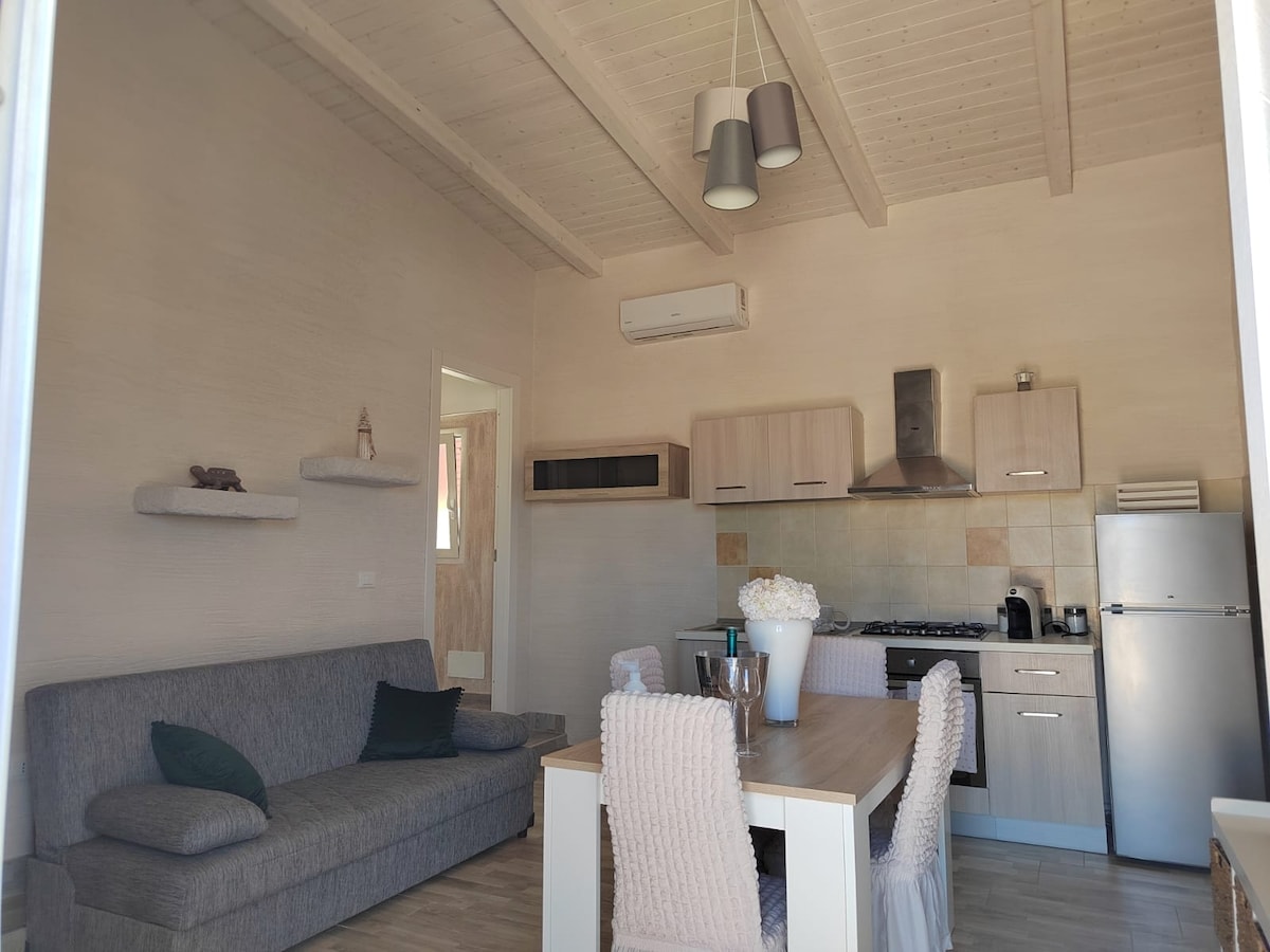 Una soluzione abitativa eccellente,villetta carinissima in paese,ma appena fuori dalla confusione. Comoda veranda esterna,due camere da letto,(un letto matrimoniale ed un letto alla francese),Cucina attrezzata,bagno con lavatrice .Aria condizionata. Alloggio per due ,max tre persone.