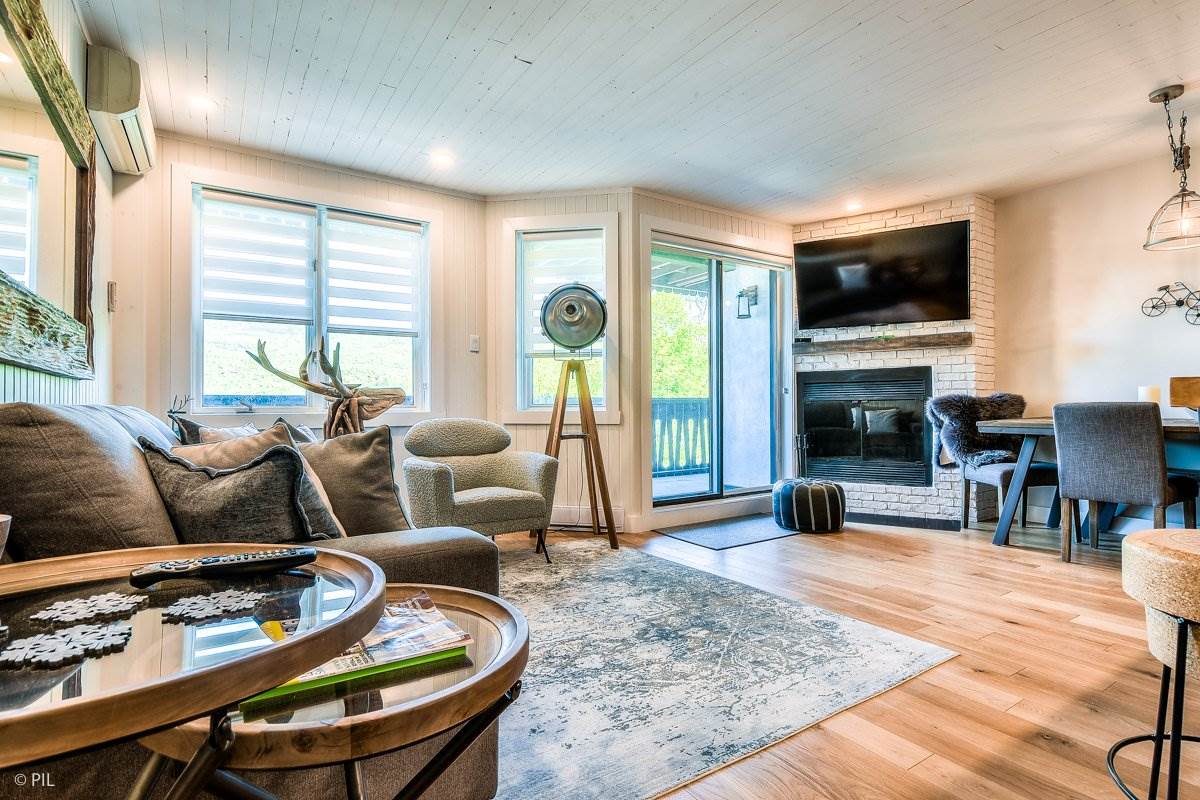 在這個獨特且寧靜的度假屋慢慢品味生活之美。位於斜坡上。 TREMBLANT最佳滑雪入口/出口。 這間一間臥室公寓配有空調(雙人床)和木製壁爐,可輕鬆容納4人,設備齊全,歡迎任何戶外愛好者。 對於滑雪出入,請注意,從公寓到Chalumeau步道大約有50步,可以開始或結束您的滑雪日。 CITQ #295941