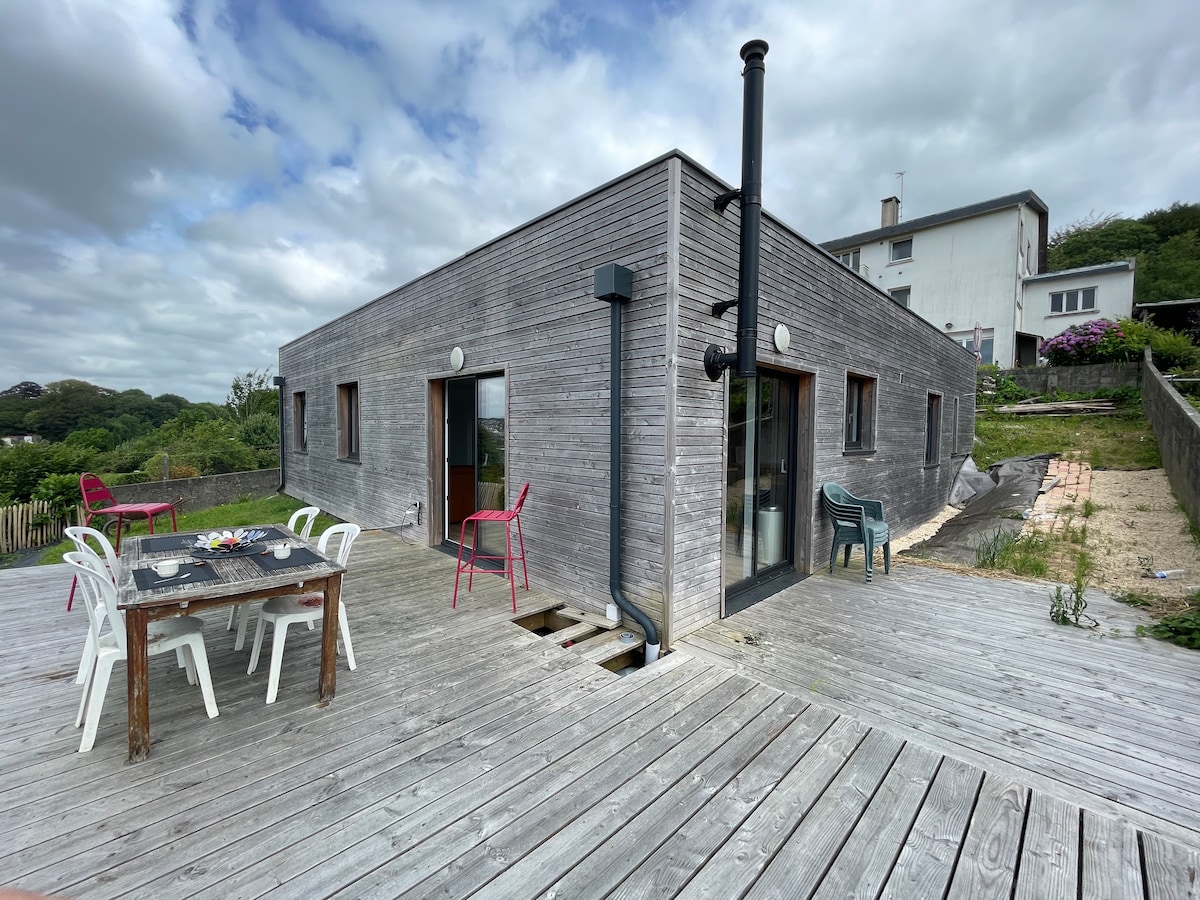 2024年全面翻修的房子 一樓、設備齊全的廚房、帶沙發的客廳、電視( WiFi、光纖)、喇叭 燃木爐, 1個馬桶 第一間:臥室配有特大床(180 x 200)、1間獨立廁所、浴缸、淋浴間、雙水槽、洗衣機 第二間:臥室有2張床(90 x 200 ) 兒童遊樂區 花園俯瞰Guillec山谷,設有露台,露台下有按摩浴缸、戶外淋浴、燒烤、花園家具、法式滾球球場。 非常適合情侶或家庭入住