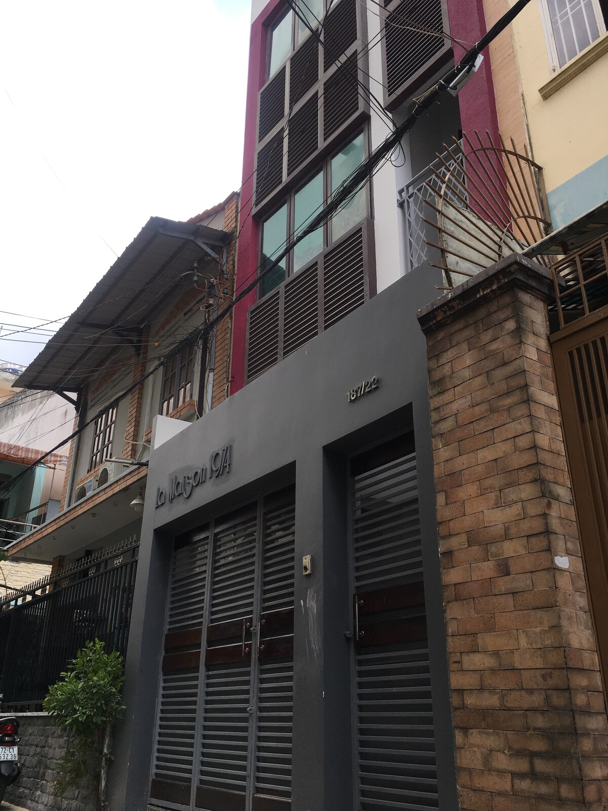 In an artistic and cozy house located right in the heart of Saigon, you are able to have a full experience in this city. It is surrounded by many street-famous and exotic foods and the iconic Vietnamese local markets. With a perfect kick-start coffee in the morning, you are set to discover Saigon's most famous landmarks in a 5 minute walk from the place. It's a 5-bedroom house with enough space to spare for you and your family and friends...