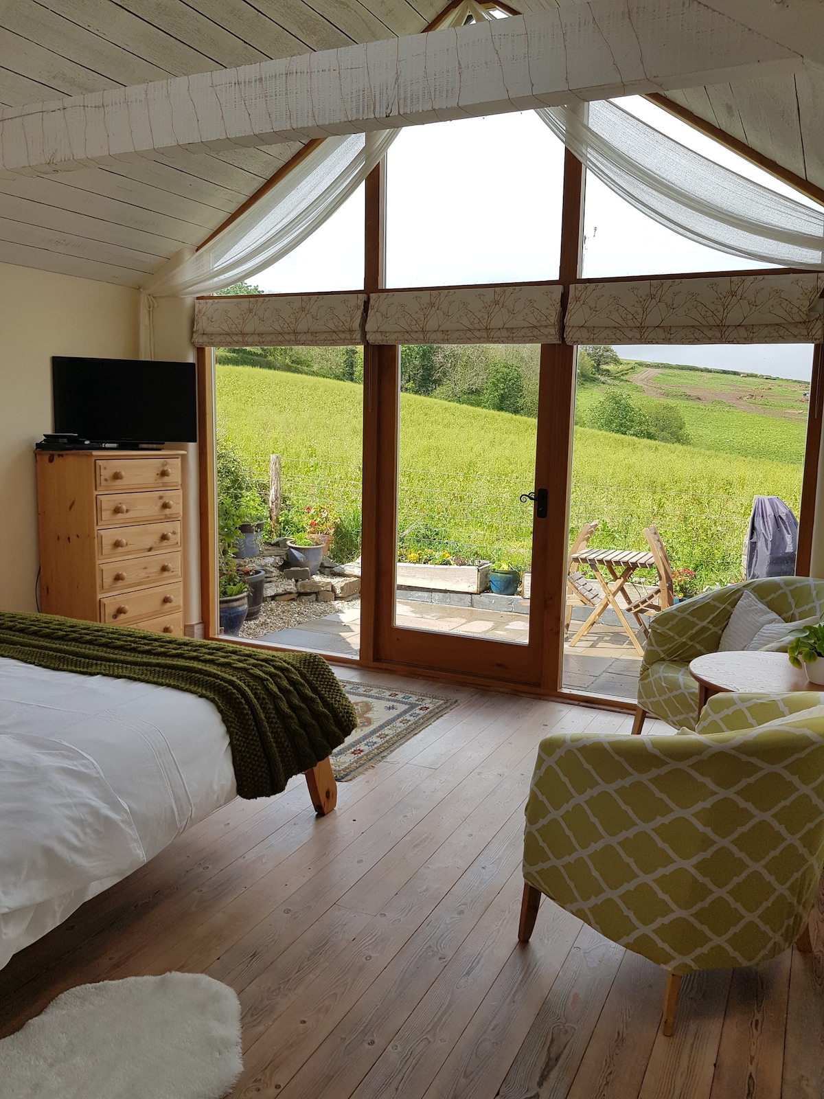 Ruby Retreat是當地木匠Peter Milner用落葉松、雪松和灰燼手工建造的獨特牧羊人小屋。他熟練的設計和工藝給Ruby一種非常特別的感覺。她是2023年的全新品牌。她坐在一個偏僻的地方,在一個工作的德文農場。俯瞰光榮的德文郡山丘的景色確實迷人。沒有什麼能分散你的注意力,凝視著田野、山丘、林地和遠處的教堂尖頂(好吧,也許有一些綿羊和羔羊嬉戲)。