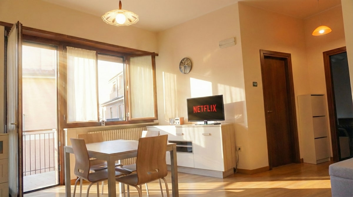 公寓位於市中心,距離大教堂廣場、科勒馬喬和聖貝爾納迪諾僅幾步之遙。配有全套廚房、帶電視和沙發床的客廳(適合一名成人或兩名兒童)、一間浴室和一間雙人臥室。250 公尺外有免費停車位。 公寓入口位於Via Fortebraccio, 101。 預訂是根據房客人數進行的;因此,不得將未包含在預訂中的房客帶入公寓。
