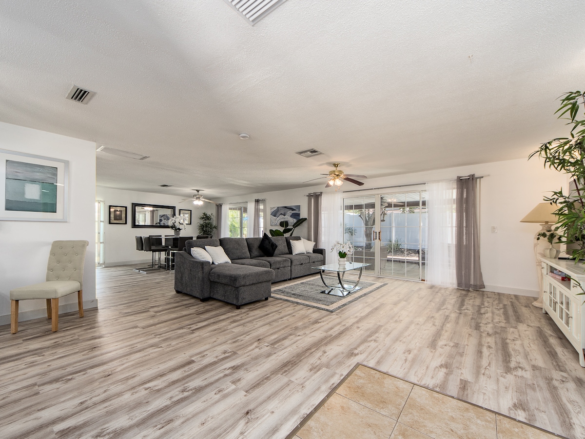 入住我們新翻修的佛羅里達巢穴,放鬆身心! 在泳池中潛水時,假裝您迷失在我們的熱帶花園中,在直接面向藍色水域和棕櫚樹生動綠色的有蓋露臺上花點時間。只要呼吸,您最喜愛的餐點在烤架上聞起來很香,您的家人正在舒適的開放空間中享受大電視,天花板很高!享受大海,距離海灘5分鐘車程,靠近一切。感覺很好!