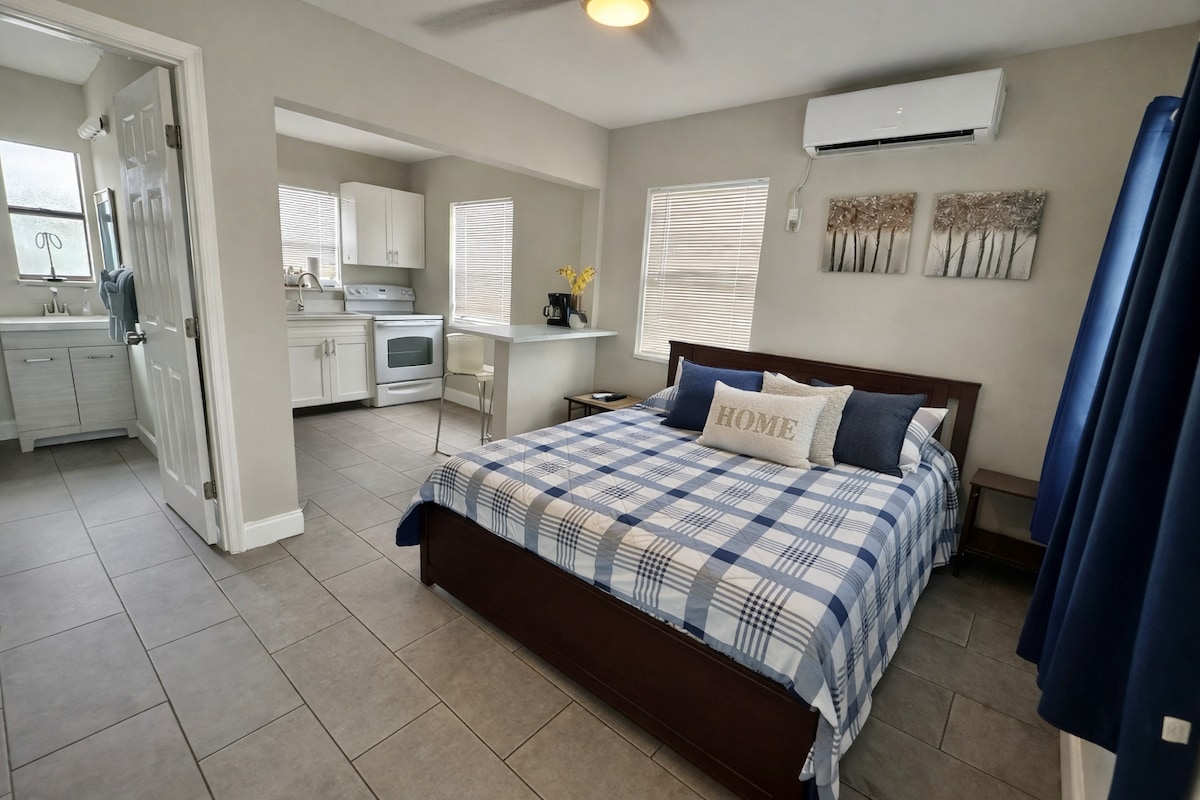 Relax and recharge in this cozy studio-perfect for 2. This property is located in a friendly, laid-back neighborhood just a 6min drive to Madeira Beach. Easy access to several gulf beaches, bars, restaurants and airports. Spend the day relaxing on the patio or fun in the sun at the beach. Book one of the many adventure tours out of Johns Pass Village and make this a vacation you won’t forget! Tiki Boats/Jet Ski/Parasail. Queen bed, coastal tiled bathroom, kitchenette, patio