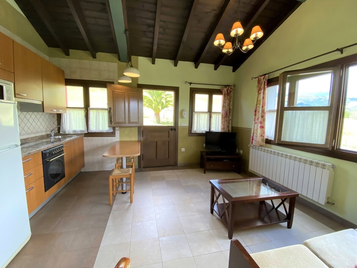Castañeu是一個完全修復的房源,可追溯到1879年左右,位於Sanmartin的小型農村。 寬敞的門禁房源,配有私人森林、大型綠地、充足的停車位和石頭露臺。 二樓陽臺和窗戶可欣賞壯觀的歐洲峰景。 開放式主樓,配有3公尺長的酒吧,可與親朋好友聚會。 2間主臥室配有套房、特大床、豪華床單和古董家具。