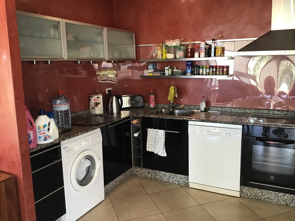 寬敞、新裝修的公寓,設有獨立入口,位於Las Brenas小村莊的山丘上,遠離遊客和夜生活,位於非常安全的街區,距離Papagayo的金色海灘15分鐘車程。 朝南露臺上的10公尺鹽水泳池可欣賞大西洋和蒂曼法亞火山的壯麗景色。日落景色迷人! 有3間臥室、1間浴室,可選擇在下方新增單間公寓,有獨立入口和浴室。設備齊全的廚房。
