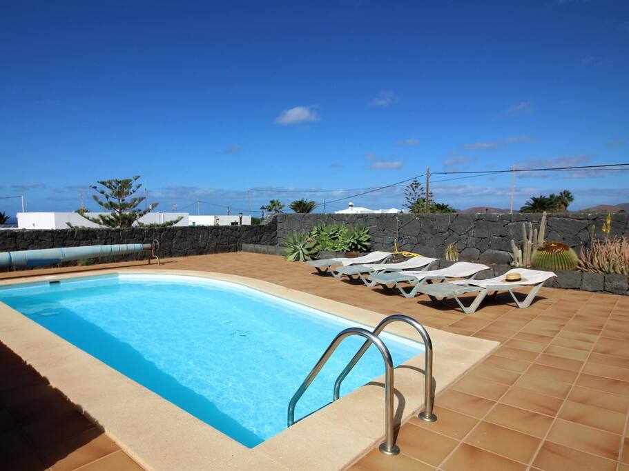 House with pool and a large garden and terrace! Ideal for families or groups of friends. Located in a quiet village but only 10 minutes drive from Playa Blanca!